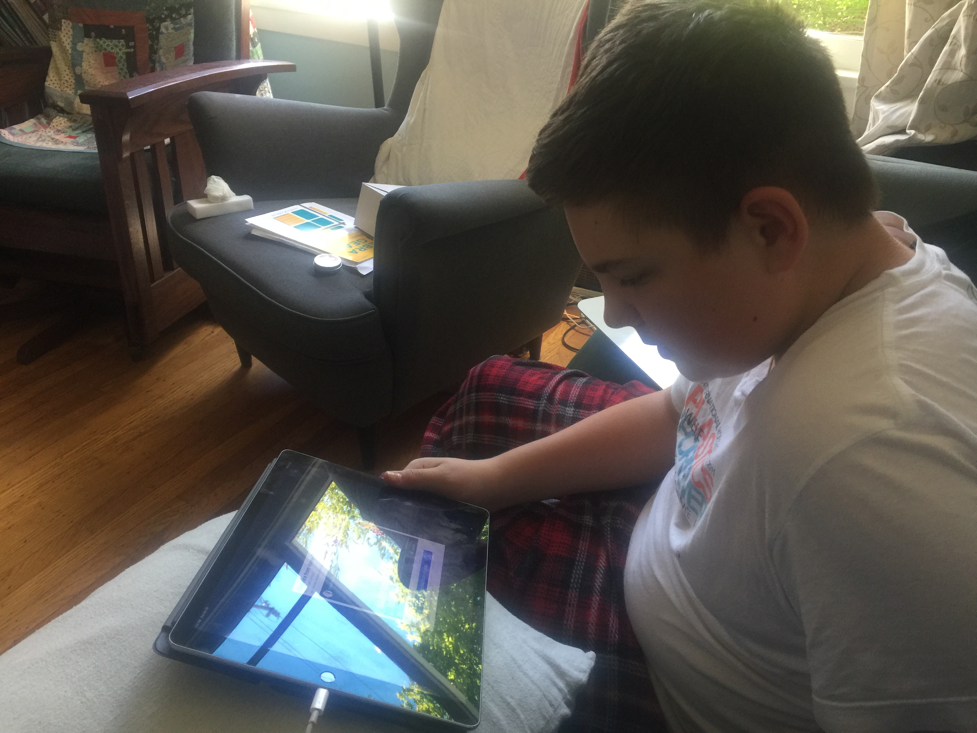 He watches the video and then translates it into a graph (hence the whiteboard and the drawing). I'll share more of the cool activities we do in algebra when we do them.